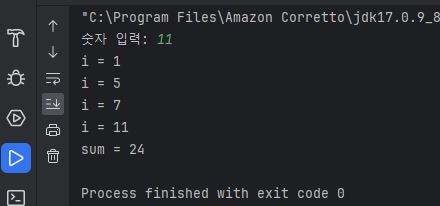 💡 정수를 하나 입력 받고 1부터 입력 받은 정수까지의 정수 중에서 2의 배수, 3의 배수를 제외한 수의 총합 출력